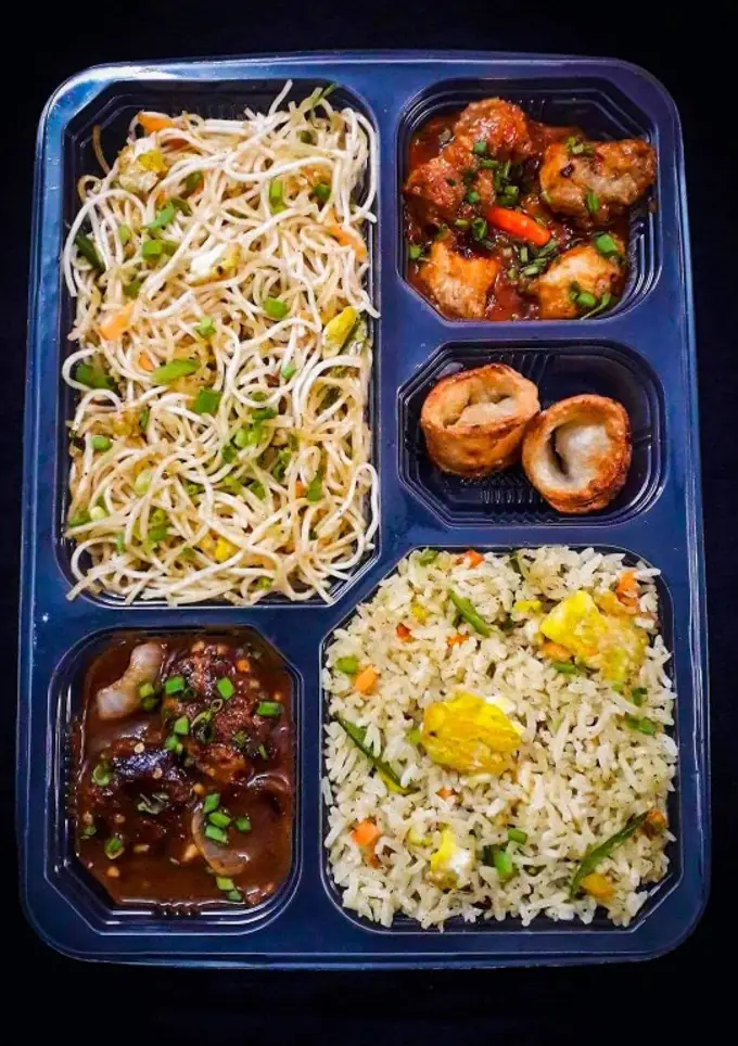 A Chinese platter is a healthy and delicious dish. Here I have included vegetable. Manchurian , fried rice and hot vegetable. Soup in the platter. You can add noodles, Spring Rolls, Chow Mein, etc