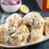Momos filled with tender tandoori chicken, typically marinated with a blend of cream and spices, then grilled in a tandoor.
